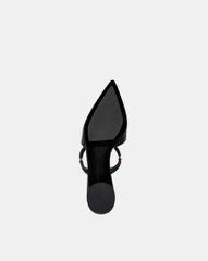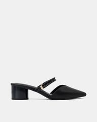 Giày mules mũi nhọn nữ tính, thanh lịch mũi giày bít khiến chân thêm thon gọn.