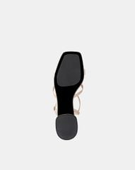 Giày mũi vuông, phối quai mảnh đan chéo tạo nên sự uyển chuyển trong bước đi