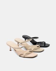 Giày không có quai hậu, tiện dụng dễ dàng mang vào tháo ra, gót nhọn 7cm cho bước đi uyển chuyển hơn