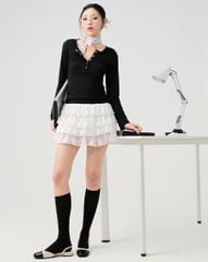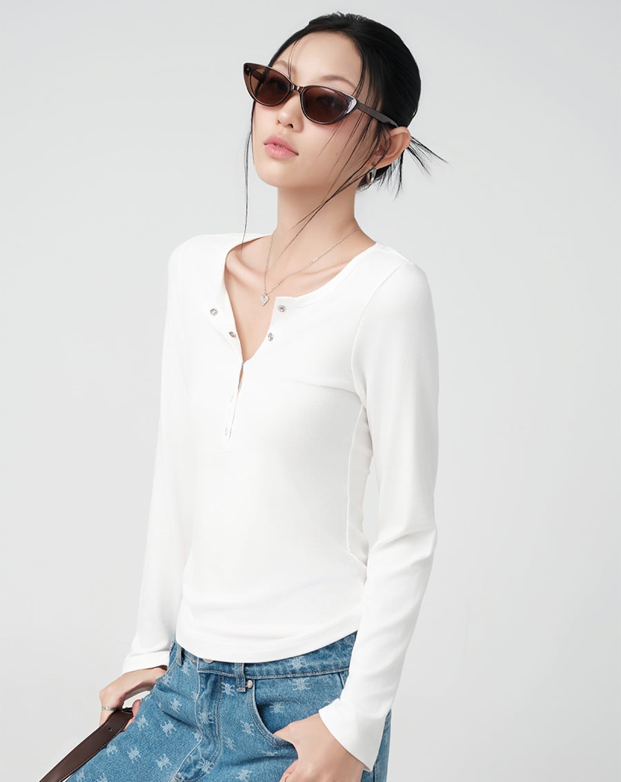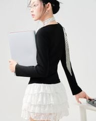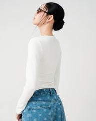 - Áo thun tay dài phối nẹp cổ ribbon trẻ trung, cá tính