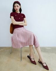 Thiết kế mũi nhọn, quai phối hạt nổi bât mang lại nét nữ tính uyển chuyển trên từng bước đi