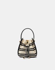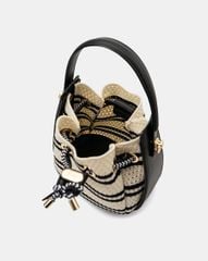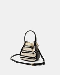Thiết kế dáng bucket nhỏ gọn, phối vải dệt sọc kết hợp da tổng hợp tạo điểm nhấn độc đáo.