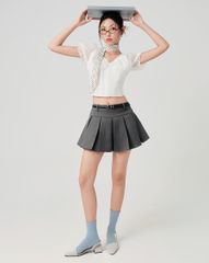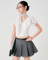 - Thiết kế váy ngắn xếp ly mềm mại, tôn dáng, nữ tính.