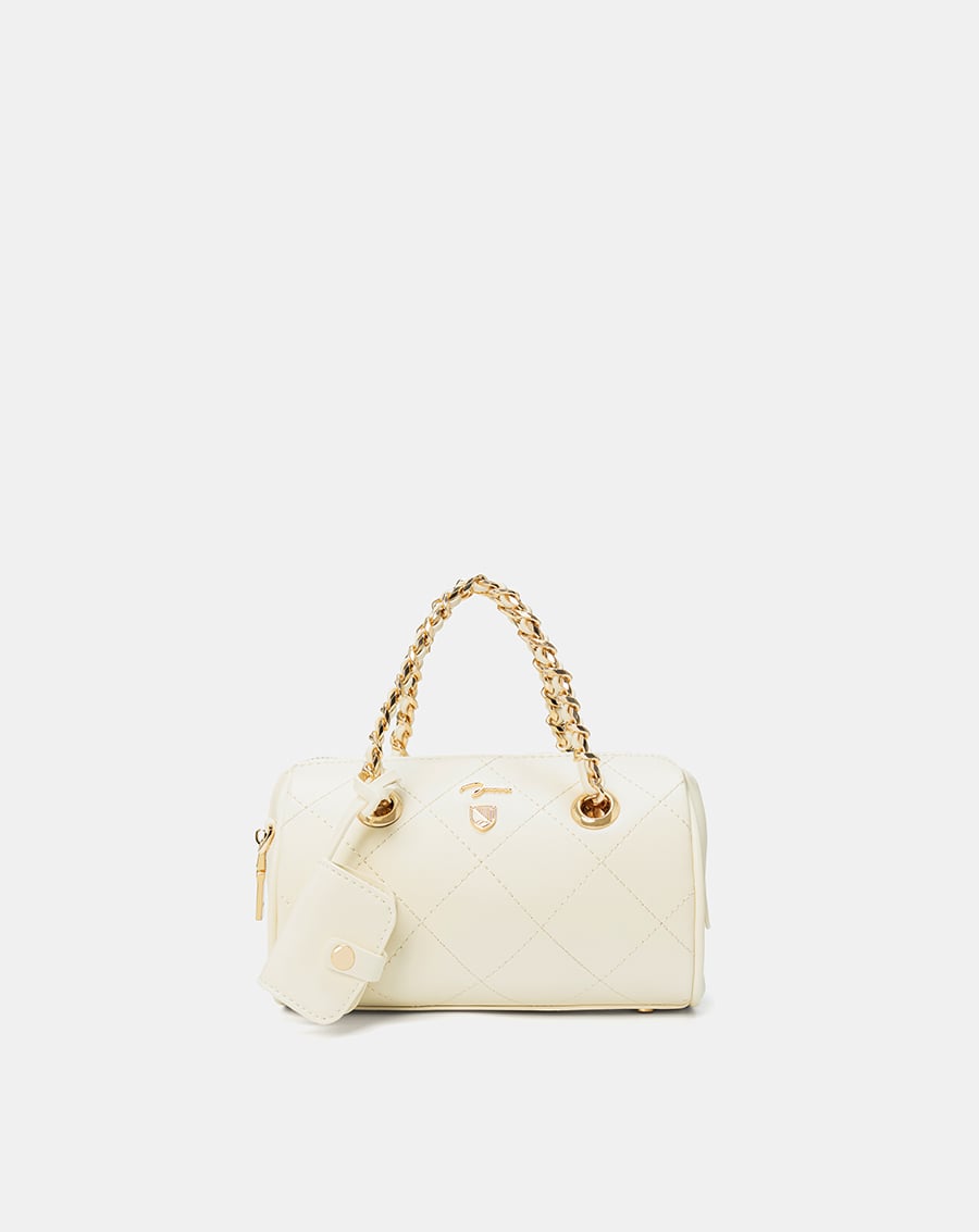 Túi thiết kế dạng trống, bo góc, bề mặt dập nổi sành điệu, nữ tính